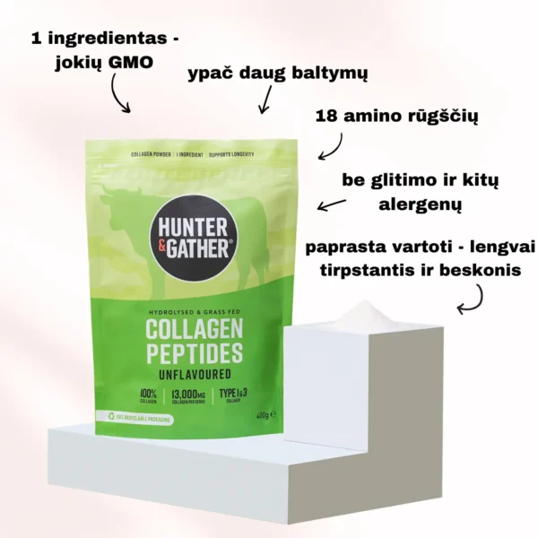 Ypač gryni, aukščiausios kokybės jūrinės ar gyvūninės kilmės kolageno peptidai, išgauti iš laisvėje augusių MSc baltųjų žuvų arba žole mitusių galvijų Prancūzijos ganyklose.
